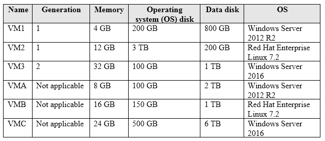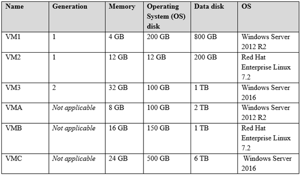 You identify several virtual machines that you believe can be hosted in Azure. The virtual machines are shown in the following table.